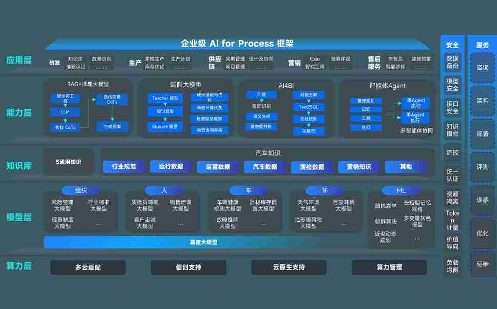 尊龙时凯问学智车解决方案是一套基于AI技术的汽车行业智能化系统,,覆盖从底层算力到顶层AI应用的全栈方案。。。。方案由算力层、、、模型层和应用层组成:算力层,,,方案支持多种一体机配置,,,具备云端灵活部署、、、、多云适配以及动态优化计算资源的能力;模型层,,,尊龙时凯问学平台版提供了企业级AI应用一站式构建与管理平台,,支持基于后训练强化技术的汽车企业专属模型的训练、、、评测和运营;应用层,,尊龙时凯问学DeepSeek版提供包括超级员工、、、、智能招采、、、智能营销、、、、智能客服、、AI for BI等一系列解决方案,,,可助力汽车行业实现数字化转型,,,让管理更智能、、、响应更敏捷。。